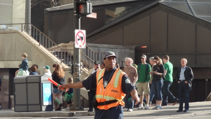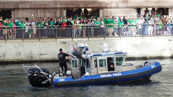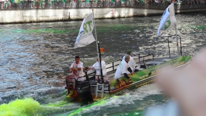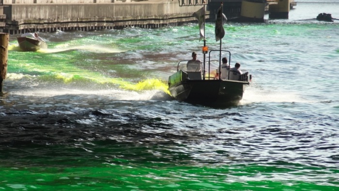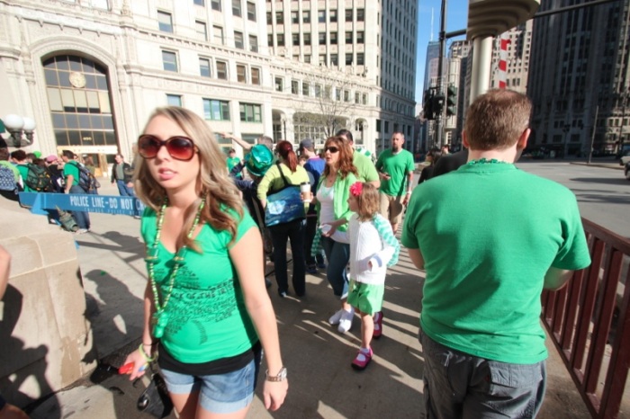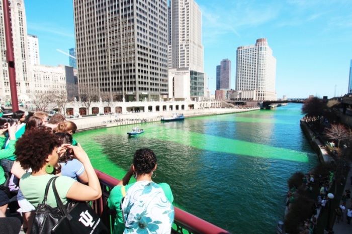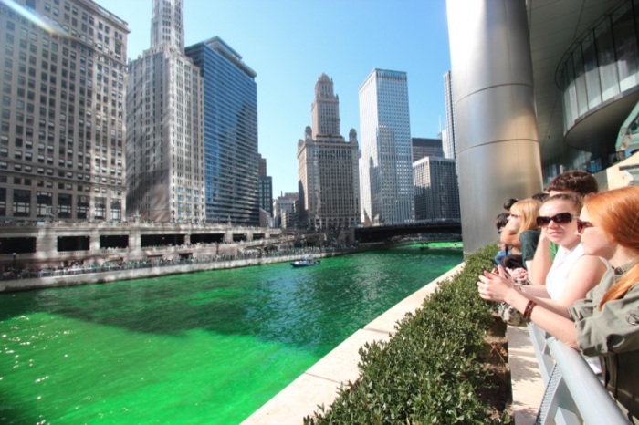 Чтобы посмотреть, как будут красить реку в зеленый цвет люди собираются в центре города с самого утра.