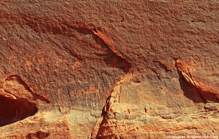 А вот и наскальные рисунки. В теории их оставили набатеи.
