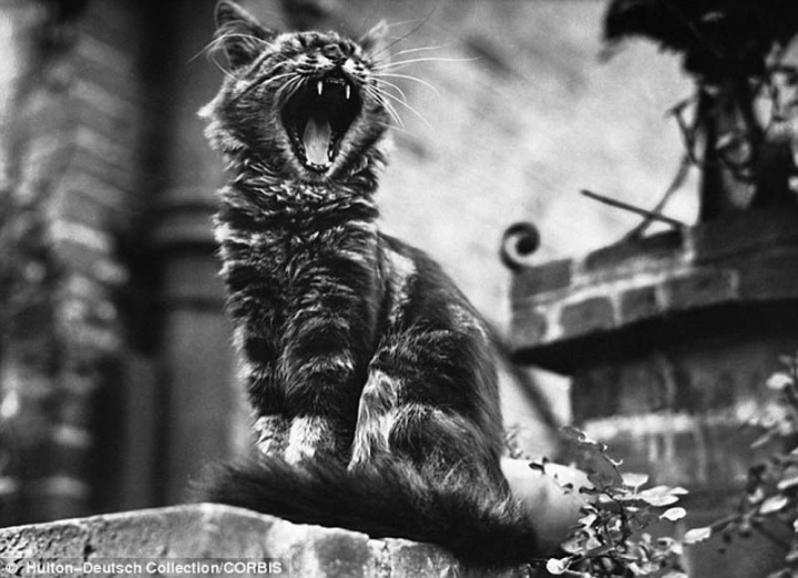19. Пора вздремнуть: зевающий кот на стене, 1930 год.
