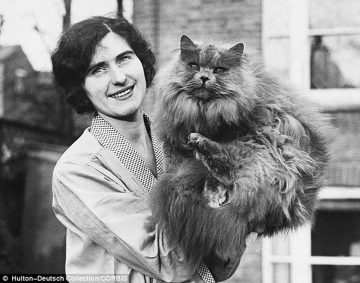 21. А это — королева красоты. Заводчица голубых персидских кошек Миссис Оглеторп демонстрирует кошку-призера Пьерро в Уимблдоне, Великобритания, 1935 год.