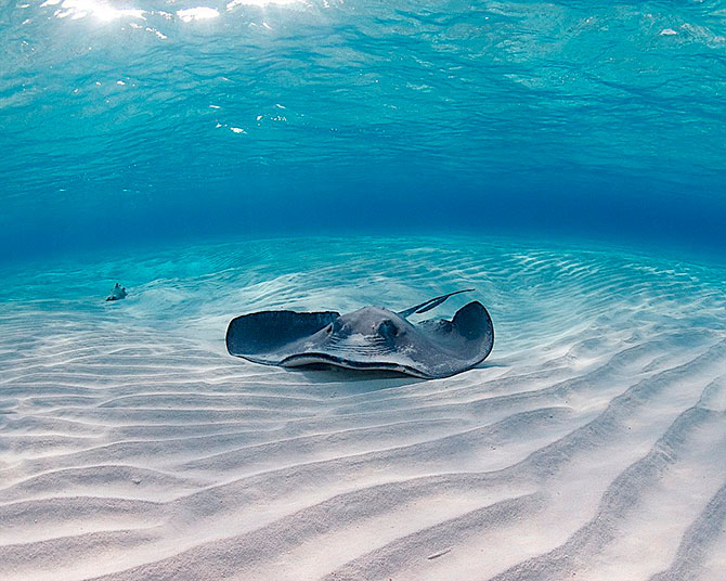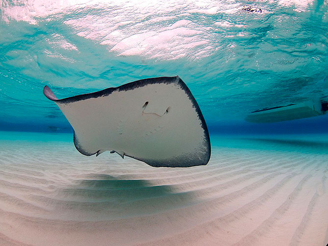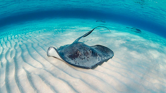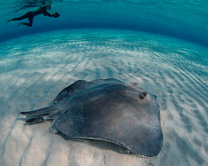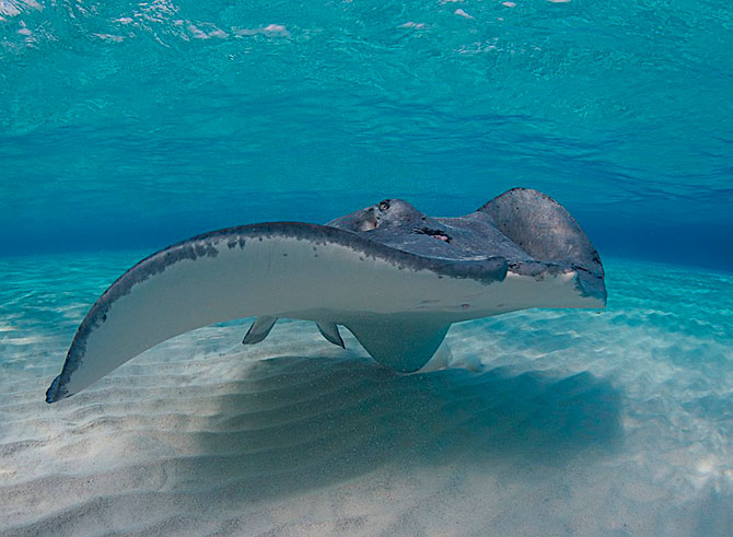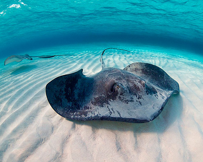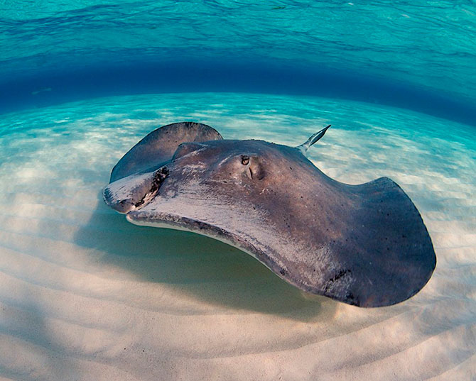 Когда рядом с вами «пролетает» такая необычная рыба, это производит неизгладимое впечатление. Скаты — это настоящие бабочки морей и океанов.