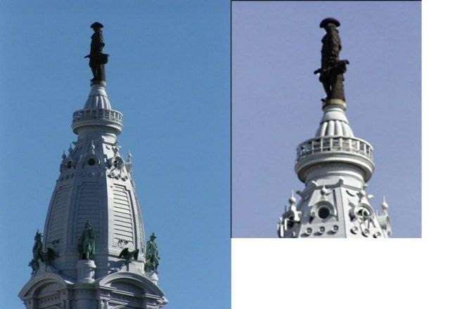 Гигантский бронзовый колосс основателя Пенсильвании был воздвигнут в 1894 году на самой вершине башни с часами филадельфийского ситихола (Philadelphia City Hall).