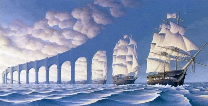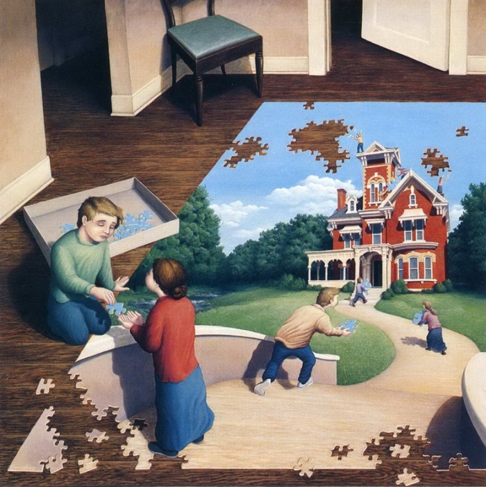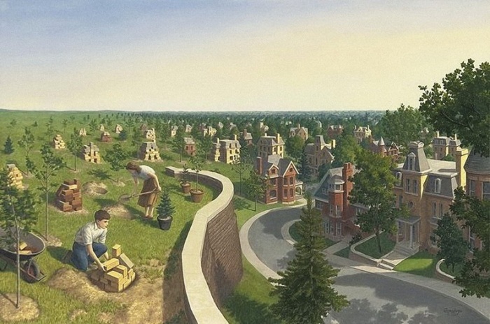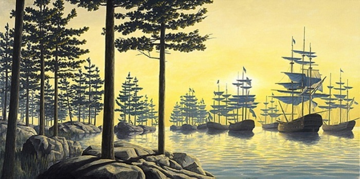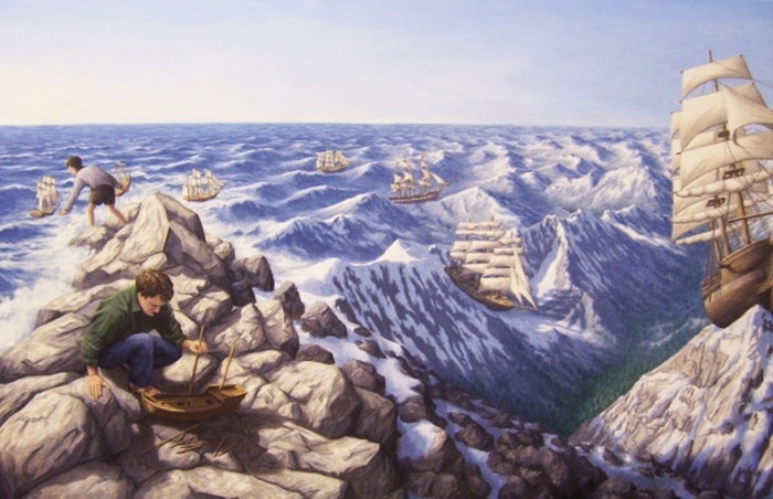 Rob Gonsalves рисует сказочные миры, в которых люди становятся облаками, а небо морем.