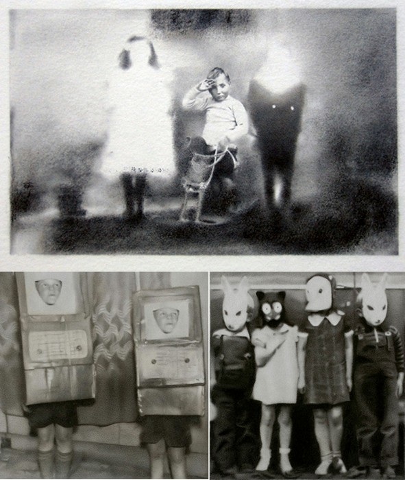 Именно они, а также старые открытки, газеты и книги, купленные в антикварных магазинах и на интернет-аукционах, служат источником вдохновения, поставляют ему новые образы для творчества.