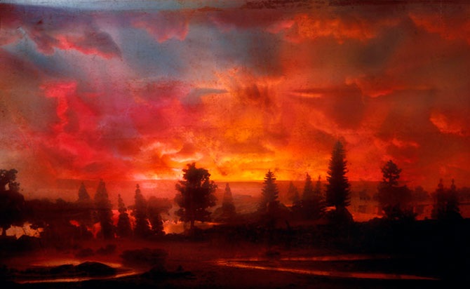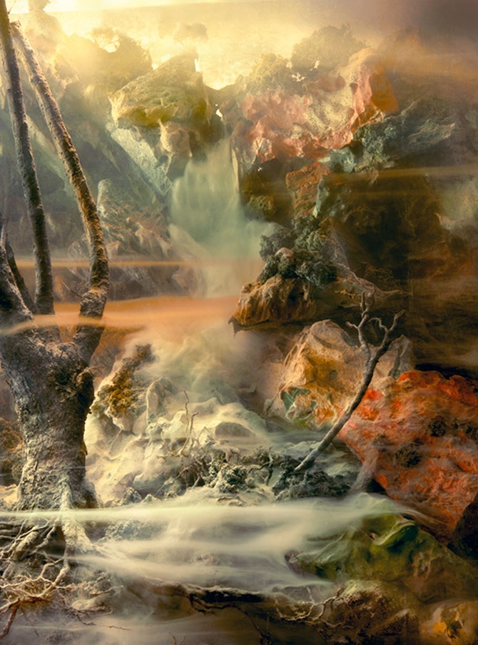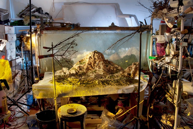 Американский художник Ким Кивер создает собственные пейзажи, используя аквариум, воду, пигменты, и различные материалы.