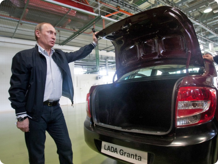 Владимир Путин съездил в Тольятти, чтобы поддержать отечественный автопром. Он даже протестировал новую модель АвтоВАЗа — на смену желтой Lada Kalina пришла вишневая Lada Granta. Правда, гендиректору завода Игорю Комарову не сразу удалось открыть багажник, а самому Путину — завести мотор. Зато для поездок на дачу годится — два мешка картошки влезет, нашел плюсы премьер.
