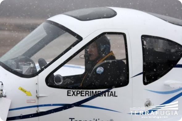 Техданные новинки таковы: масса автомобиля – 480 кг, число мест – два, мощность двигателя – 140 лошадиных сил, максимальная скорость на дороге – 180 километров в час, в воздухе – 110 км/ч, время разгона с места до 100 км/ч – 4,5 секунды, длина разбега для взлёта – 200 метров, взлётная скорость 60 км/ч, крейсерская высота полёта – 600-900 м, потолок – 4,5 км, дальность — 300 километров в воздухе или 400 по земле. Внизу – лидер экспедиции Нил Лаутон (фотографии Skycar Expedition и Zuma Wire West Photos).