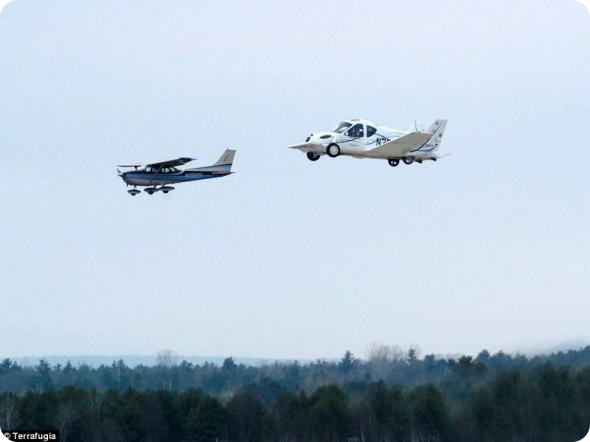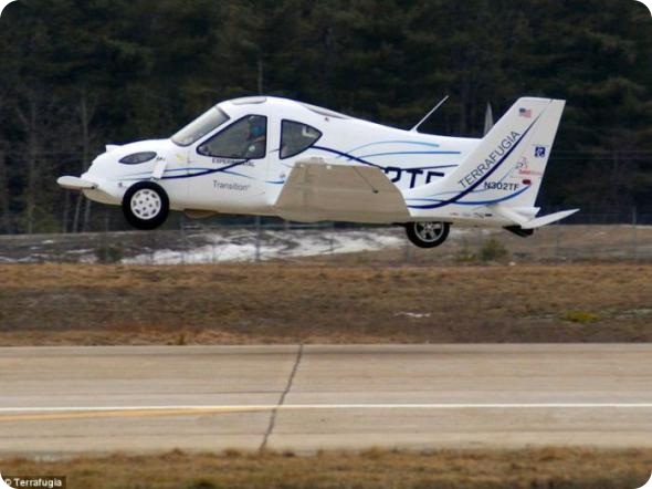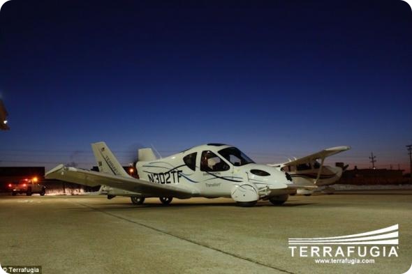 На земле Terrafugia Transition является переднеприводным автомобилем, который приводится в движение обычным бензиновым двигателем. В воздухе машина использует 100-сильный пропеллерный мотор Rotax 912S. Превращение обычного автомобиля в самолет занимает всего 30 секунд — за это время у новинки складываются крылья. Запас хода в воздухе составляет около 724 километров, а максимальная скорость – 185 километров в час. По земле Transition при полностью заправленном баке сможет проехать только 105 километров.