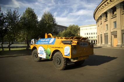 Это чудо на базе армейского БРДМ сейчас колесит у нас по Сибири – если с ним «завязаться» по Wi-Fi можно еще и кучу каких-то добряков выиграть на халяву.