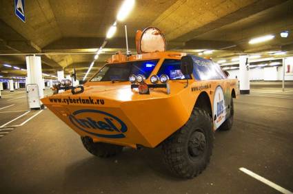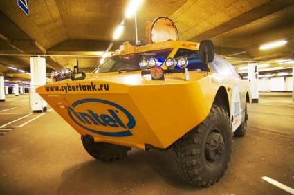 Изначально наш аппарат всяко круче H2 технически – хотя бы потому, что он умеет плавать. И попроходимее будет – колес в два раза больше, как никак (4 колеса выдвигаются гидравликой – когда надо). Единственное – Хаммер комфортабельнее. Был. Наши ребята затюнинговали БРДМ – теперь он гораздо круче «Хаммера» еще и по комфорту. В этом «Кибертанке» есть LCD-панель, «домашний кинотеатр», холодильник, кондиционер, Wi-Fi, -сервер, камера заднего вида, GPS-треккер и даже штатный кальян! Хочу себе такой – настоящий «Фишкин джип»!