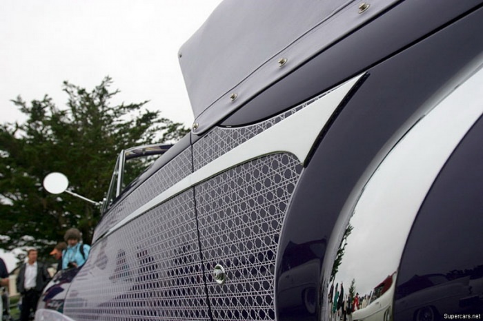 Самая характерная черта автомобиля — двухцветное решение массивных передних и задних крыльев, обильно украшенных хромом, что позволило скрыть огромный размер машины, разбив его на несколько уровней. Кропотливо нанесенная сетка на боковинах кузова — дань памяти довоенному Cadillac V16 с кузовом Fleetwood.