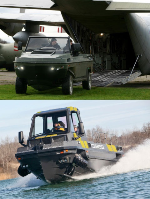 Новинки от Gibbs Amphibians – это «джип» Humdinga II и грузовик Phibian, которые разработчики называют лучшими образчиками технологии высокоскоростных амфибий (High Speed Amphibian – HSA) на сегодняшний день в мире. И та и другая развивают на воде скорость 26 узлов (48 км/ч), а переход на сушу у обеих занимает 10 секунд.