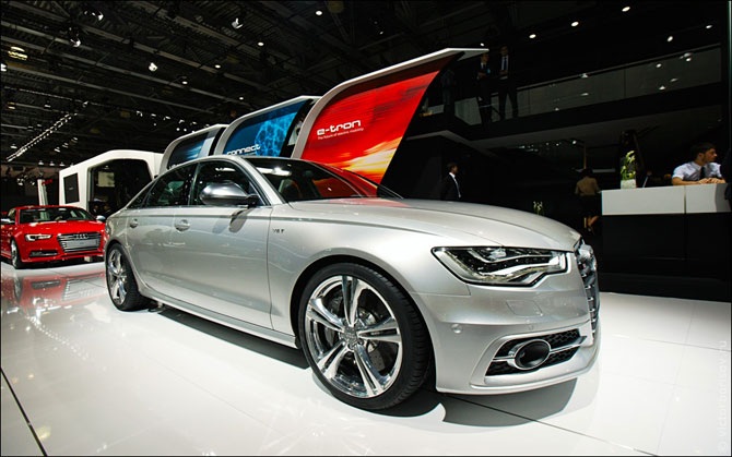 Мировая премьера на стенде — суперкар Audi R8 с десятицилиндровым двигателем мощностью 550 лошадиных сил. Вообще, если так посмотреть, то Ауди представили исключительно самые мощные версии своих автомобилей.