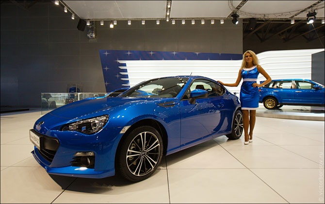 На стенде Subaru практически отсутствуют посетители, впрочем я уже писал, что совершенно не понимаю, почему эта компания упорно продолжает делать автомобили, ориентируясь исключительно на фанатов марки. В этом нет ничего плохого, но с точки зрения бизнеса это заведомо проигрышная позиция. Надеюсь, что красавица BRZ хоть немного спасёт ситуацию. Это спортивное купе было разработано совместно с Toyota. Под капотом двухлитровый атмосферный оппозитный бензиновый двигатель мощностью 200 лошадиных сил. Привод на заднюю ось.