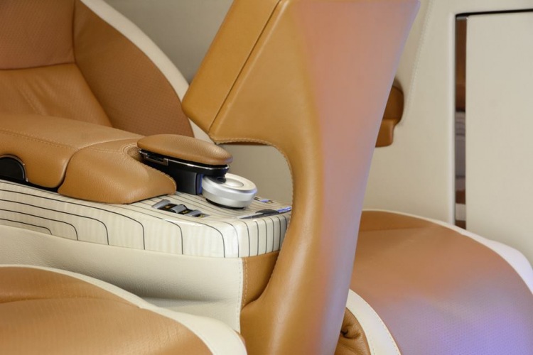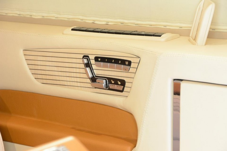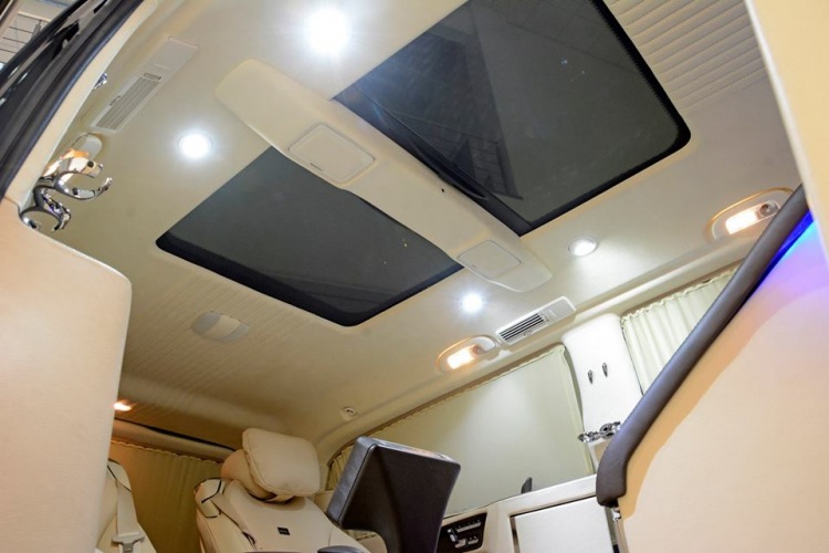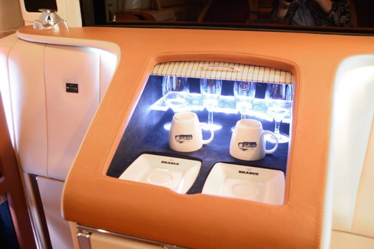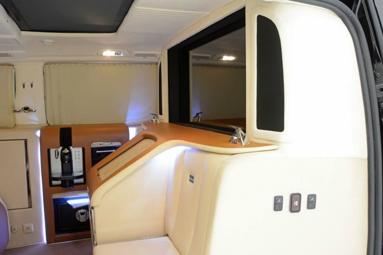 Brabus Viano iBusiness получил полностью новую отделку пассажирского отсека, где все может быть оформлено по индивидуальному заказу. Полностью заменив материалы отделки и улучшив шумоизоляцию, тюнеры установят пару кресел с электроприводом и еще два небольших раскладных кресла напротив первых двух. Огромный экран подключен к компьютеру и дает широкие возможности для развлечений и работы. В пути можно выпить чашечку кофе, который приготовит кофе-машина, отметить заключение контракта бокалом шампанского, охладившегося до необходимой температуры в холодильнике. Управлять всем оборудованием можно с помощью сенсорного экрана в подлокотнике или благодаря специальному приложению, установленному на iPad. Довершают все высококачественная кожа и приятная для лаза подсветка.