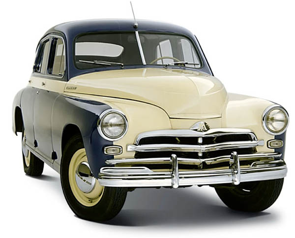 Кроме того, конструкцию постоянно улучшали и модернизировали. Изменился внешний вид машины: трехэтажная облицовка радиатора уже весной 1947 года уступила место двухэтажной, у которой нижние хромированные молдинги не заходили под габаритные огни. Сами габаритные огни приняли упрощенную форму, без круглого расширения посередине. На переднем бампере появилась перекладина между клыками. На кожухе под капотом — лючок для доступа к сигналам. Внедрили, наконец, новые сплошные колесные диски. Ранний вариант приборной панели, с ленточным спидометром, сделанным по образцу американского Шевроле, подвергся рестайлингу — при запуске в серию дизайн упростили и облагородили. Спидометр решили устанавливать привычной, круглой формы — появилось место для возможной установки радиоприемника. Ободки фар стали хромировать, что придавало законченность оформлению передней части машины.