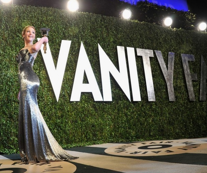 Лауреат премии «Оскар» за «Лучшую женскую роль» Дженнифер Лоуренс, сменившая пышное платье от Christian Dior на новое от Calvin Klein. (Pascal Le Segretain/Getty Images)