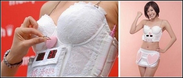 Сумасшедшее изобретение японцев. Ещё более сумасшедший тот, кто рискнёт подарить этот лифчик девушке на праздник. Ведь Marriage Hunting Bra оснащён цифровым табло, которое отсчитывает время до 30-летия своей хозяйки. На бюстгальтере также располагается держатель для шариковой ручки и обручального кольца. Наряд с сюрпризом призван напоминать о неизбежности «бальзаковского возраста» и о том, что лучше бы до того времени выйти замуж…