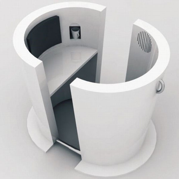 В наличии — маленький, но очень необходимый элемент — место и для кофеварки, и для чашки. Как уверяет дизайнер, в этой кабине можно настроить режим подачи кофе. Посетитель по собственному вкусу может выбрать кофейный напиток из любого сорта кофе.