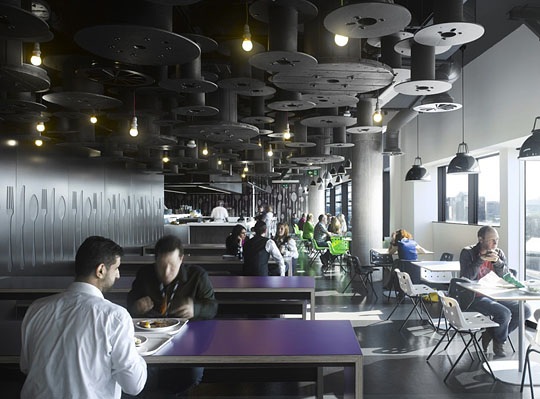 Практически каждая зона штаб-квартиры может использоваться как индивидуальное рабочее место, переговорная комната, помещение для проведения брифов и семинаров или студия с возможностью вести прямую трансляцию.