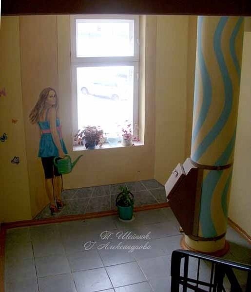 Жители подъезда в картинах на стенах