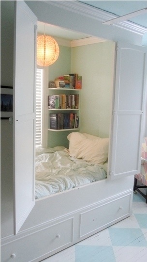 16. Карнизы на потолке + ткань = кровать с балдахином.