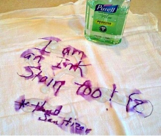 Используйте антибактериальное средство для рук, чтобы удалить пятна на одежде от чернил.