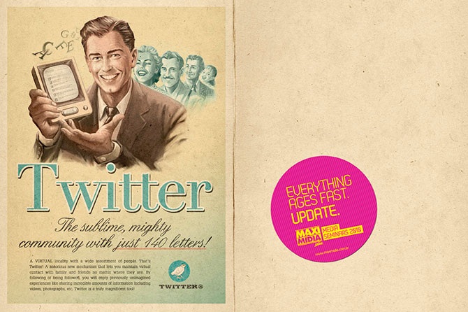 Бразильское агентство Moma изготовило винтажные рекламные плакаты современных изобретений цивилизации. Чтобы прорекламровать серию семинаров, авторы состарили такие инновации последних лет как FaceBook, Youtube, Skype, таким образом показав, как быстро устаревают технологии.
