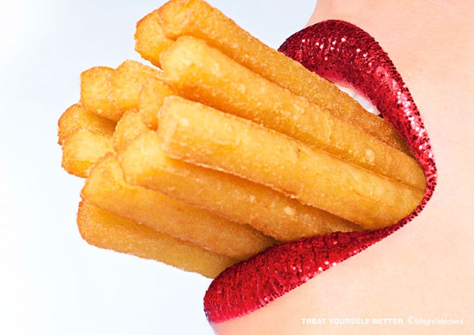 �Любите себя и не суйте в рот всякую гадость�, – говорит нам реклама похудения WeightWatchers. Гламурный образ накрашенных губ и рот, набитый жирной картошкой, доносят сообщение без излишнего менторства и негативных ассоциаций.