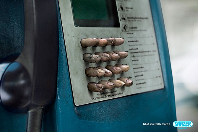 Первое, что вызывает реклама антибактериального геля для рук Sanzer, это отвращение. А затем инстинктивное желание помыть руки. Чего и добивалась данная реклама. Слоган �До чего ты на самом деле дотрагиваешься?�