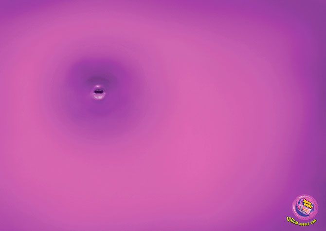 Вид из огромного пузыря жевательной резинки Hubba Bubba. Креатив агентства DDB.