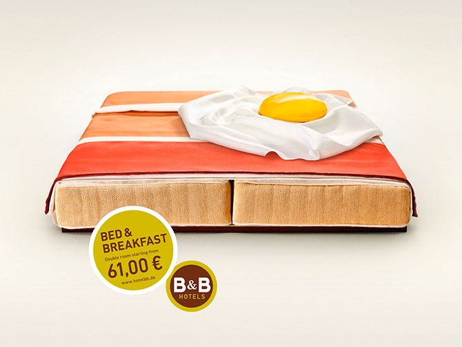 Гениальный арт-дирекшн в рекламе B&B; Hotels �Гостиница ночлег и завтрак�. Реклама немецкого агентства Publicis – это настоящее произведение искусства, радующее глаз.