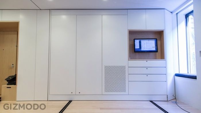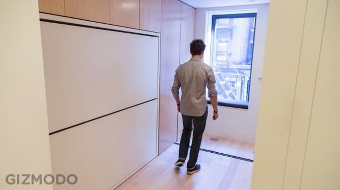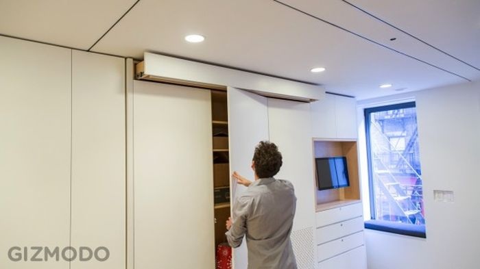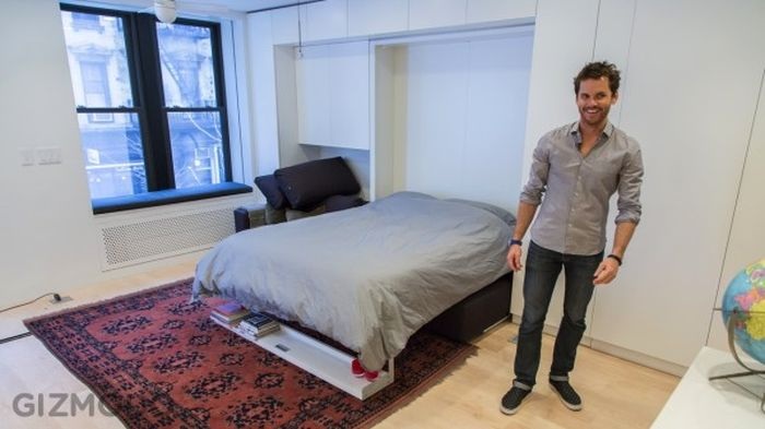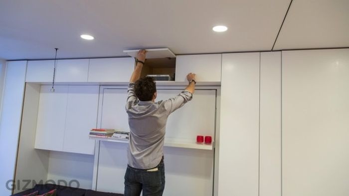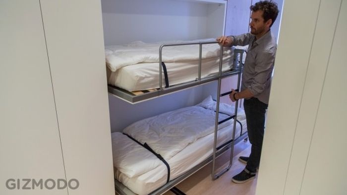 Кроме того, здесь есть даже гостевая зона с двумя кроватями, откидывающимися из стены, домашний проектор, вместительная система хранения, кухня и ванная комната.