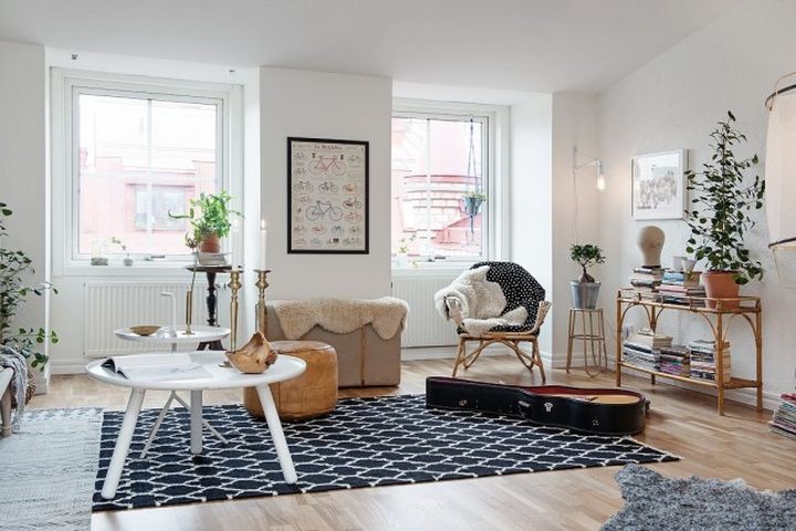 Не обязательно цепляться за наличие в ваших крохотных апартаментах громоздкого дивана. Иногда его может заменить уютный ковер и парочка кресел.