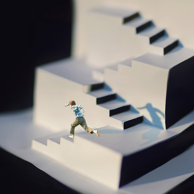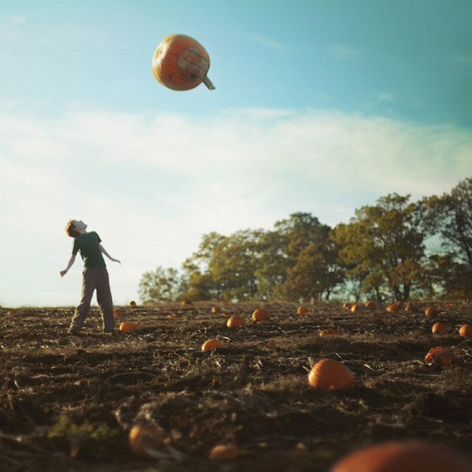 14-летний фотограф Zev живёт в Массачусетсе (США). Для создания своей коллекции сюрреалистических автопортретов он использовал несколько разных техник, играя с размерами и масштабами. В результате получилось волшебное путешествие в мир, где человек ростом с травинку, лист может служить зонтиком, а жёлудь – креслом.