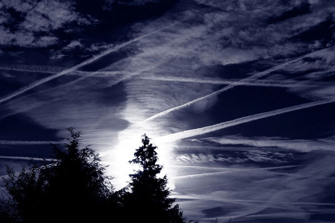 Самолётные выхлопы и вихревые потоки на больших высотах превращают частицы льда в воду. Длинные белые полосы высоко в небе не что иное, как капельки воды, находящиеся во взвешенном состоянии.