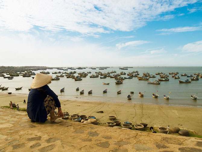 Фантхиет, Вьетнам. На круглых лодках-джонках здешние рыбаки ходят в море уже много веков.