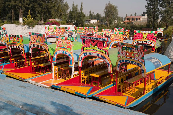 Мехико, Мексика. Прогулочные лодки, на которых сегодня катают туристов по древним каналам, прорытым еще ацтеками.