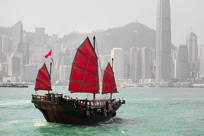 Гонконг. Aqua Luna – старинная пиратская лодка с сотканными вручную парусами.