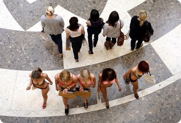 Торговый центр в графстве Эссекс, Великобритания, провел показательную рекламную акцию. Они предложили подарочные сертификаты на сумму 100 фунтов стерлингов (около 160 долларов) первым 100 девушкам, которые придут в магазин в одном нижнем белье и на каблуках. Кстати, несмотря на то, что девушки пришли без одежды, самой популярной покупкой была обувь.