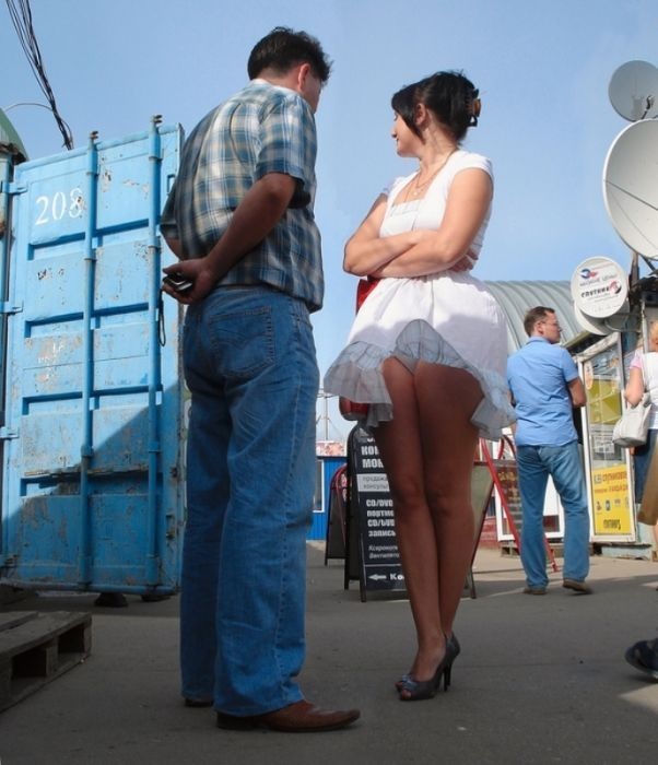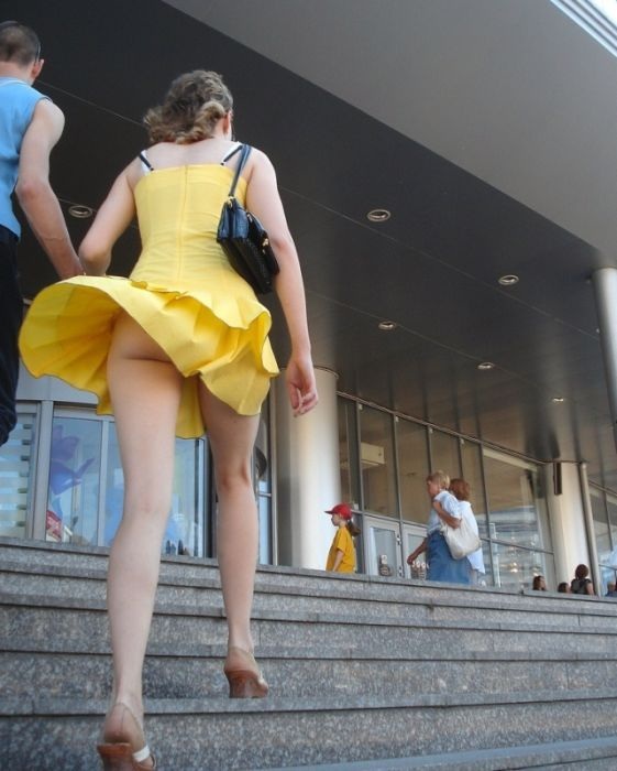 Симпатичные девушки, которые не торопясь прогуливаются по улицам города в мини юбках, а находчивые фотографы подлавливают нужный момент и легкий ветерок для отличного снимка.