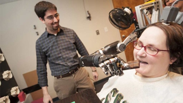 В университете американского города Питтсбурга сотрудники отдела нейробиологии в течении 13 месяцев создавали роботизированную руку для 52-летней парализованной Джен Шойерманн (Jan Scheuermann). Женщине имплантировали в кору головного мозга два 96-канальных микроэлектрода. Уже на второй день Джен могла справиться с управлением «рукой», а через 13 месяцев владела ей словно настоящей биологической конечностью.