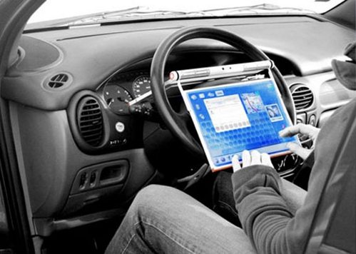 Компьютеры могут отлично дополнять автомобили. Но как приспособить полнофункциональный портативный ПК для работы в машине? Дизайнер Анна Лопес (Anna Lopez) предлагает к сенсорному экрану планшетного устройства добавить противовес. При этом, как видно на изображении, место выбрано идеально: дисплей будет располагаться прямо на рулевом колесе, что означает отсутствие необходимости принимать неестественное положение тела, куда-либо поворачиваться. Главное – не соблазниться совместить работу с компьютером и управление авто.