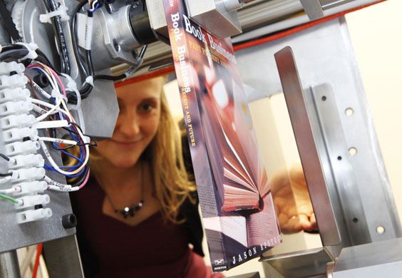 При себестоимости книги в типографии 55–60 рублей (480 страниц, твердый переплет, 3000 экземпляров), в магазине вы сможете ее купить рублей за 360. Очень дорогая логистика. В прошлом году началось производство Espresso Book Machine (EBM) — печатной и брошюровальной машины в одном флаконе. Раньше подобные устройства стоили от миллиона долларов, средняя цена EBM — $100 000. Машина может распечатать, сшить и обернуть книгу за пять минут. В машину загружается около миллиона книг.
