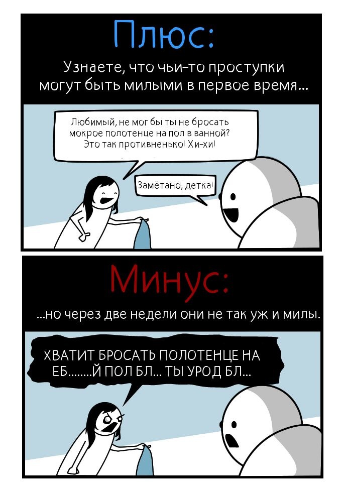 Плюсы и минусы проживания с возлюбленными под одной крышей.