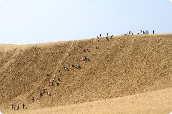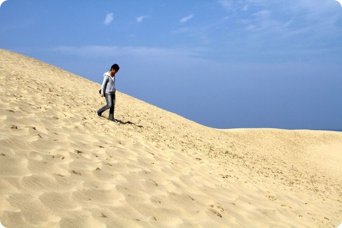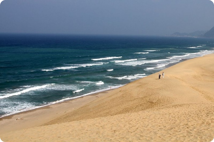 Песчаная дюна Тоттори раскинулась на 16 км вдоль побережья Японского моря (ширина 2 км.)… и если бы не высоченные барханы и возвышенности, можно было бы предположить, что это просто огромный пляж…