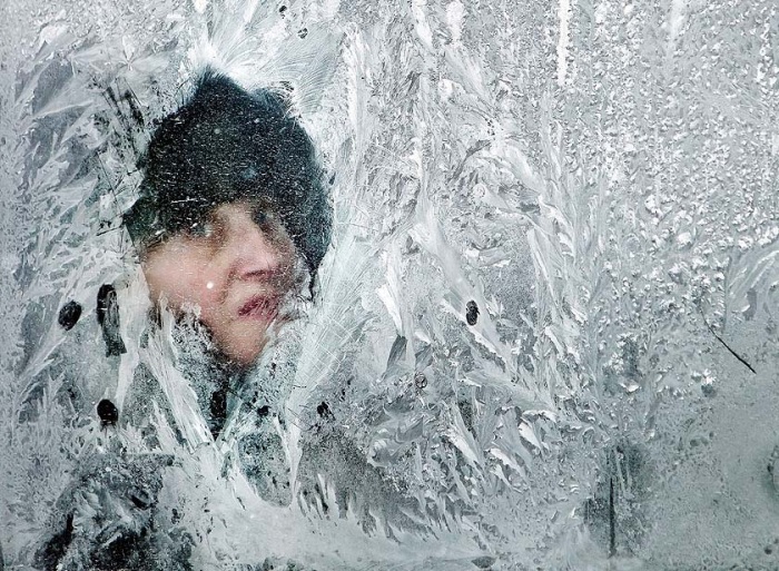 1. Женщина в автобусе смотрит через замерзшее окно в Бухаресте. (Vadim Ghirda / Associated Press)
