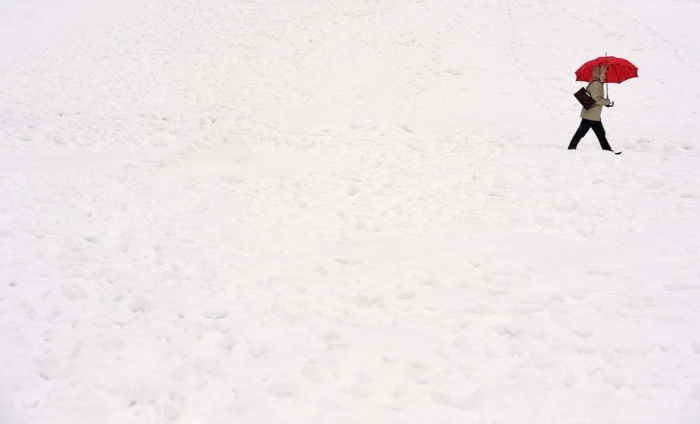 10. Девушка идет под зонтом в морозе в Софии. (VASSIL DONEV / EPA)