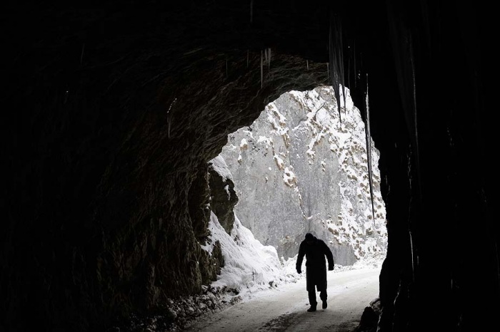 13. Босниец на заснеженной дороге в деревне к северу от Сараево. (Amel Emric / Associated Press)