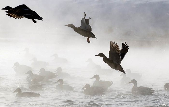17. Утки взлетают с пруда холодным зимним днем в Минске. (Sergei Grits / Associated Press)